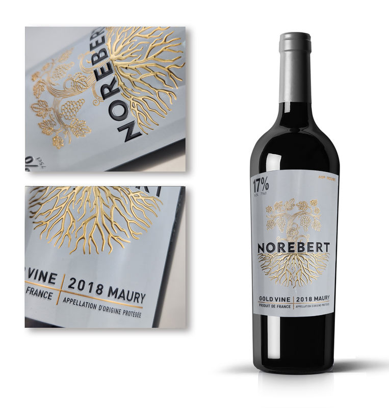 Label kemasan emboss mewah untuk botol anggur wiski bir desain pribadi 1